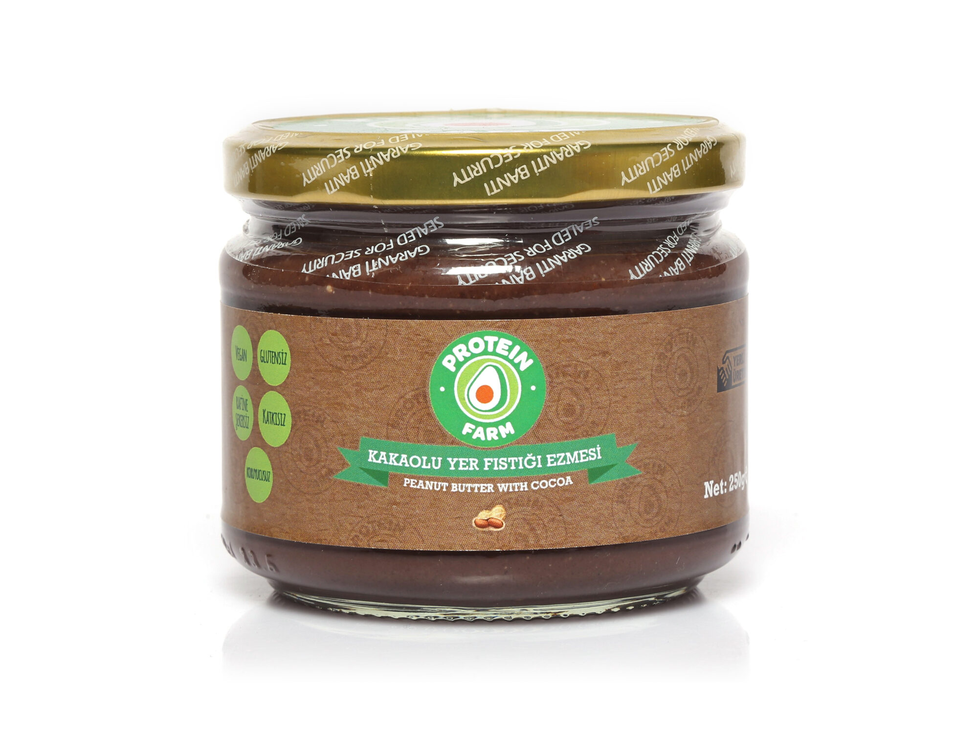Katkısız, koruyucusuz, şeker ilavesiz, ev yapımı, doğal kakaolu yer fıstığı ezmesi. Net 250 gr. Yaklaşık %95 yer fıstığı içerir.